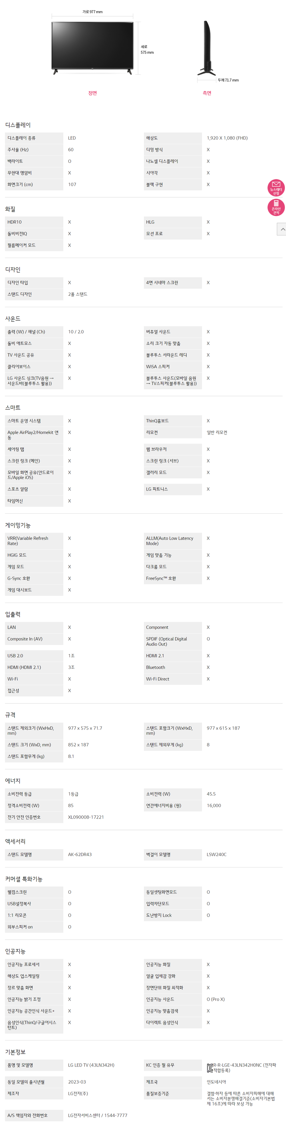43인치 FHD TV 43LN342H