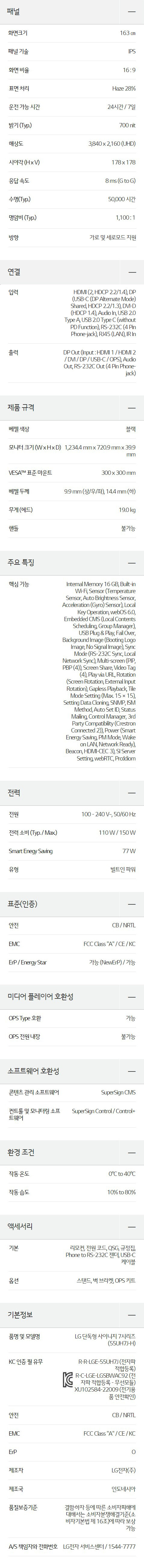 55인치 UHD 단독형 사이니지 모니터 55UH7J