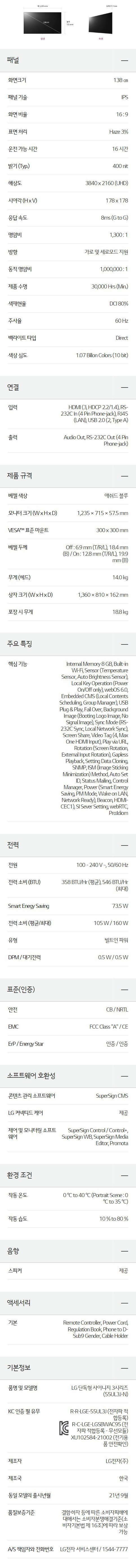 55인치 UHD DID 사이니지 TV 모니터 55UL3J