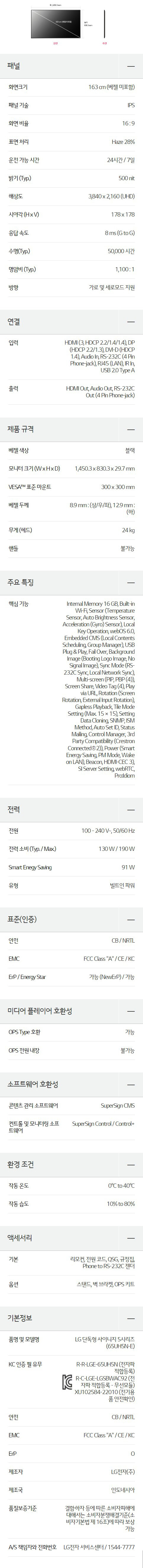 65인치 UHD DID 사이니지 TV 모니터 65UH5N
