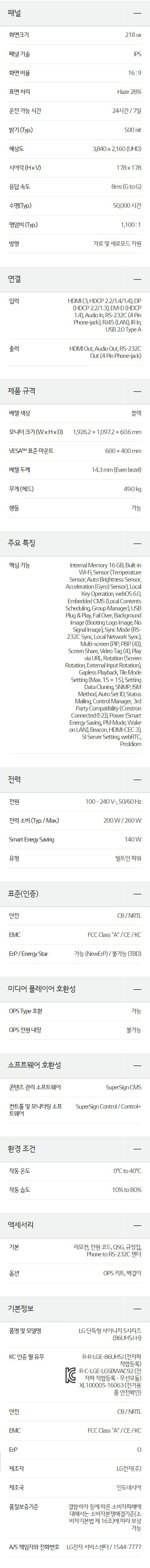 86인치 UHD DID 사이니지 TV 모니터 86UH5J