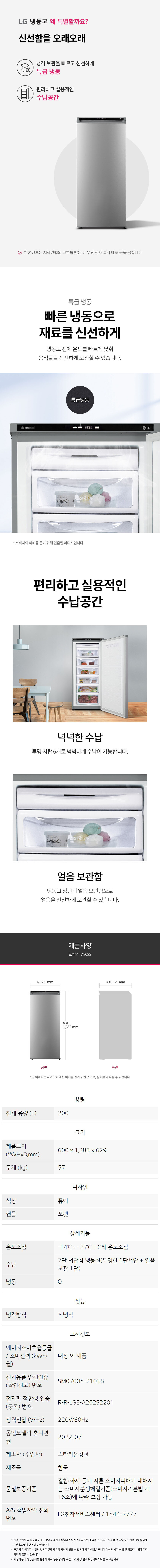 LG 200L 냉동고 A202S