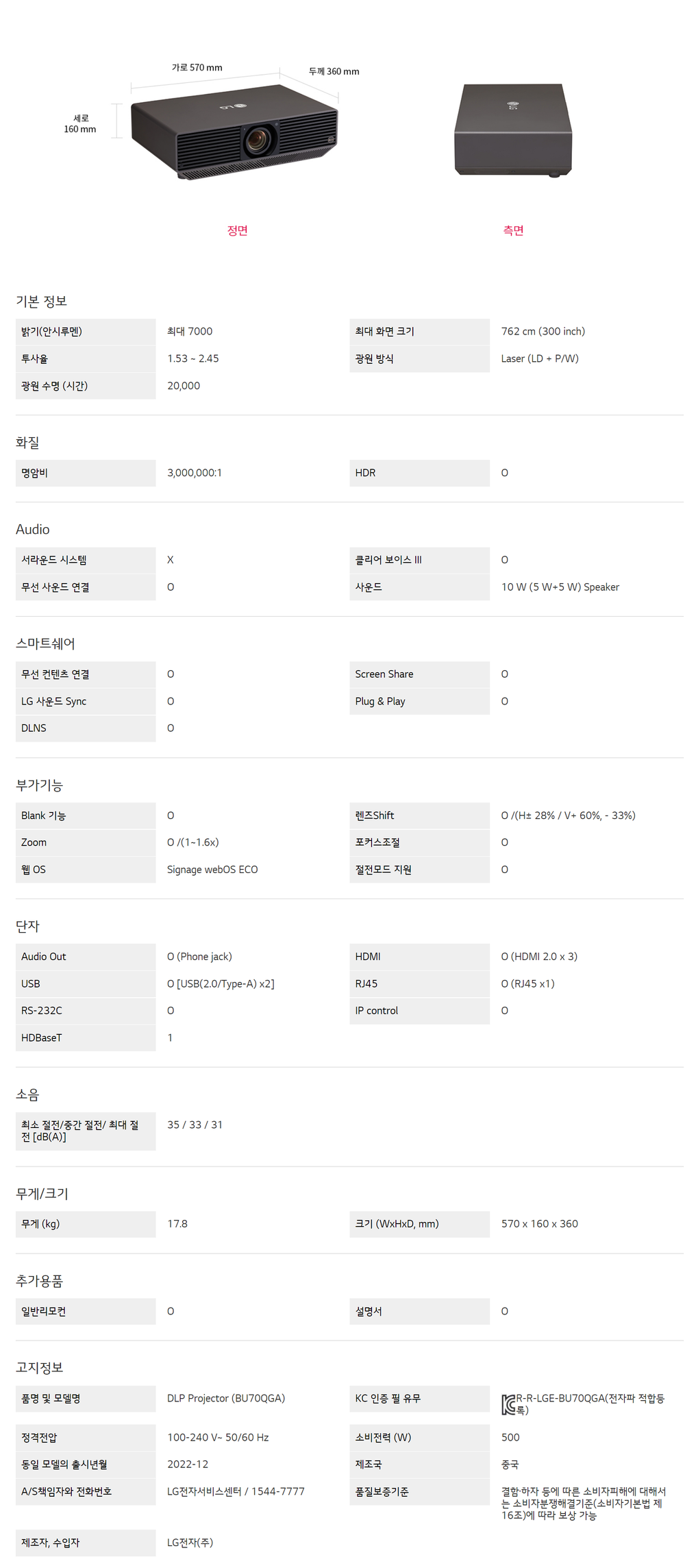 LG프로빔 7000안시 BU70QGA