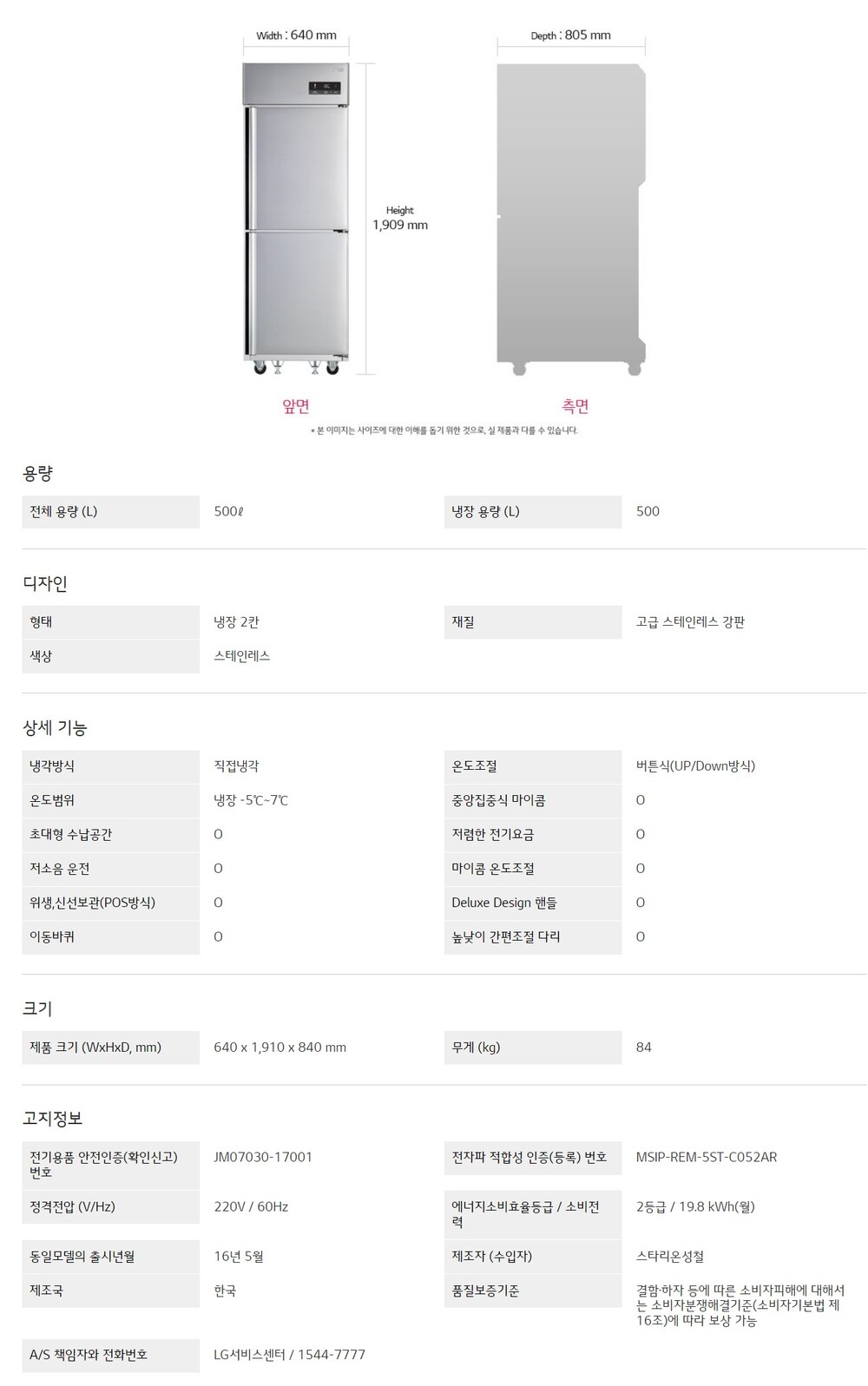 LG 업소용 냉장고 (냉장2칸) C052AR