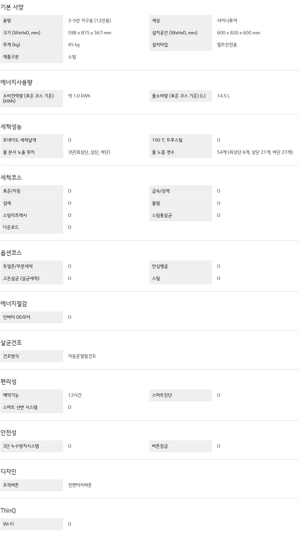 LG DIOS 빌트인 식기세척기 스팀 DUE5NSE