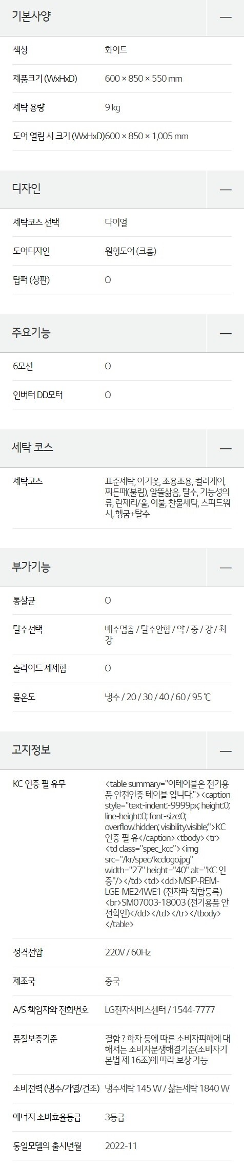 LG TROMM 빌트인 세탁기 9kg F9WP
