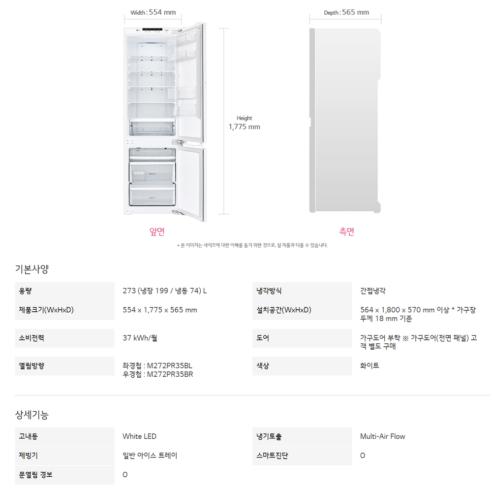 LG DIOS 빌트인 콤비 냉장고 273L M272PR35BR 우열림