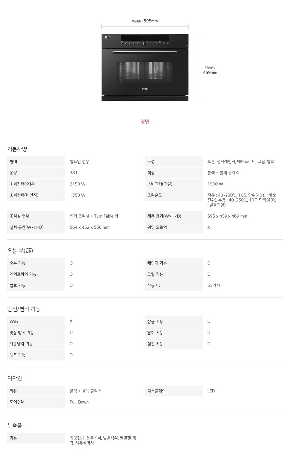 LG DIOS 빌트인 광파오븐 38L MZ385EBTA