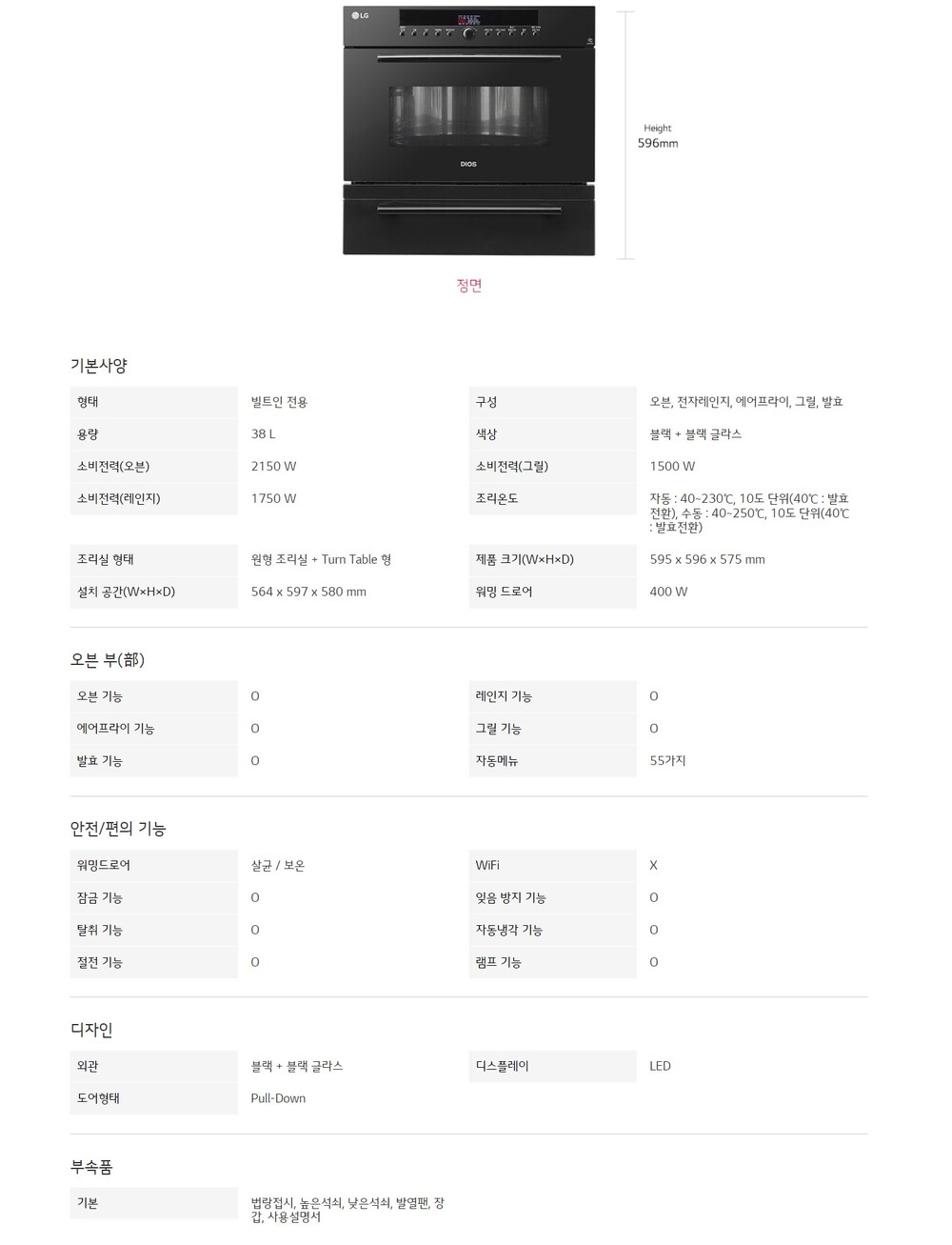 LG DIOS 빌트인 광파오븐 38L MZ385EBTAD