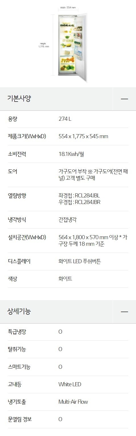 LG DIOS 빌트인 냉장전용고 RCL284JBR