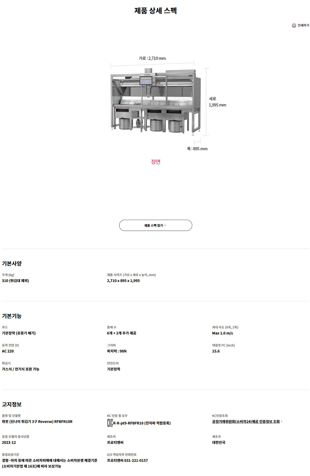 튀봇 (린나이 튀김기 3구 Reverse) RFBFR10R