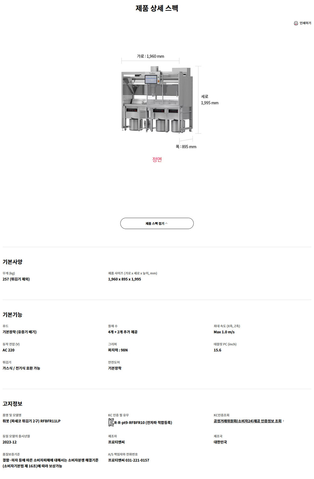튀봇 (파세코 튀김기 2구) RFBFR11LP