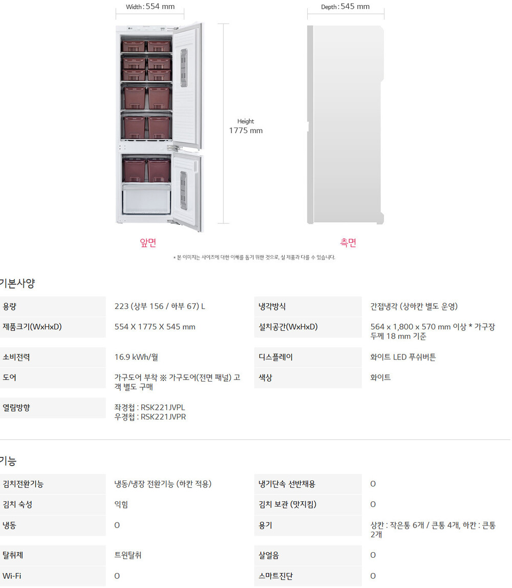 LG DIOS 빌트인 김치냉장고 RSK221JVPL