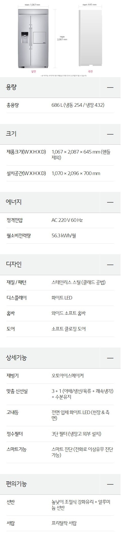 LG 빌트인 양문형냉장고 정수기 홈바형 S695SI34B
